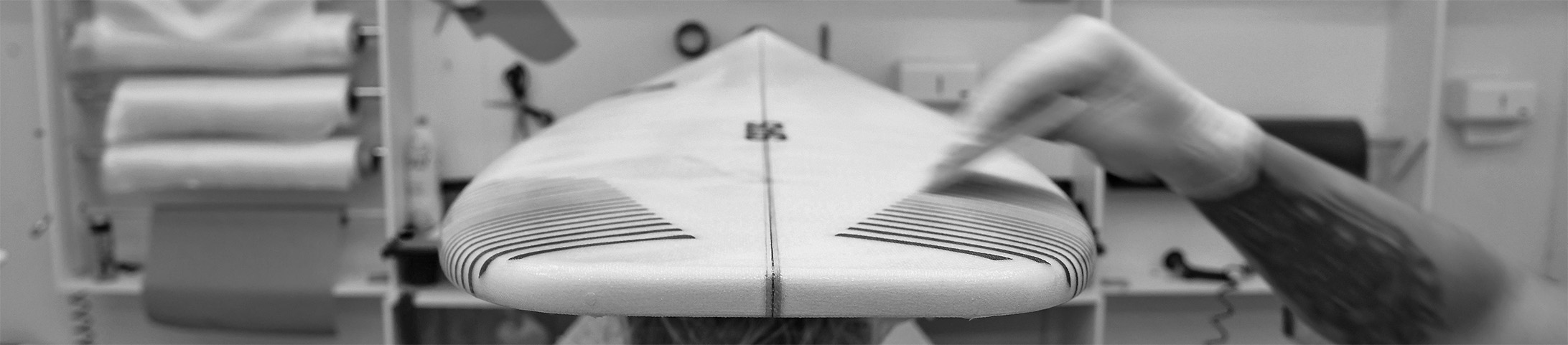 Os retalhos de carbono que poderiam ficar como remanescentes na fábrica são transformados em CARBON POWDER, um pó de carbono que é misturado com a resina da laminação das pranchas. Neste processo a prancha fica mais resistente, sem perder sua flexibilidade e ainda diminui o impacto ambiental de um processo industrial.